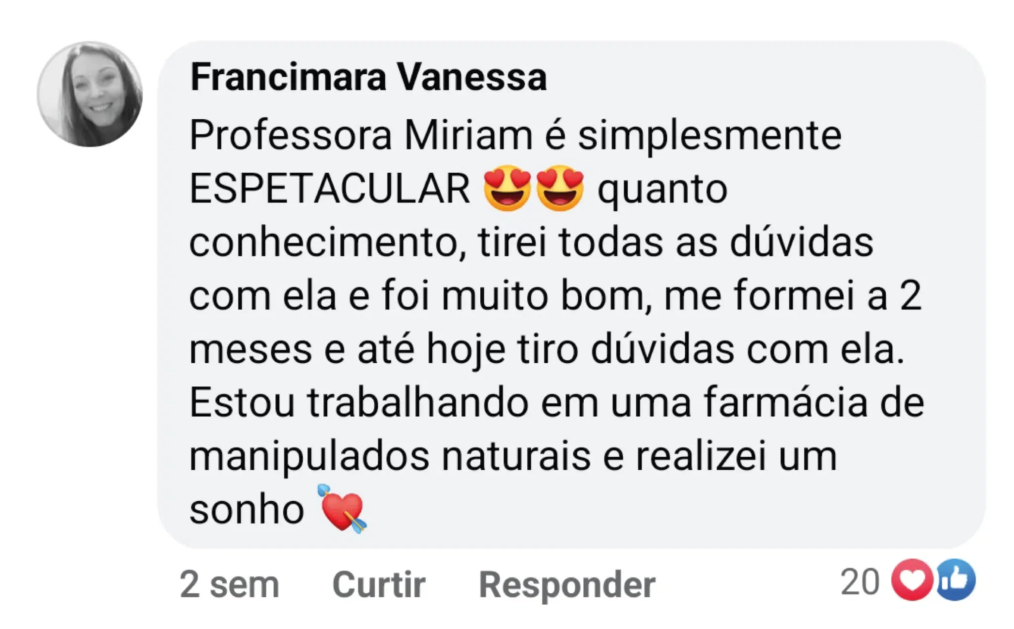 Miriam Praxades é Bióloga renomada, com mais de duas décadas de experiência dedicadas ao estudo das propriedades curativas das plantas. , Miriam também possui especilização em Botânica.