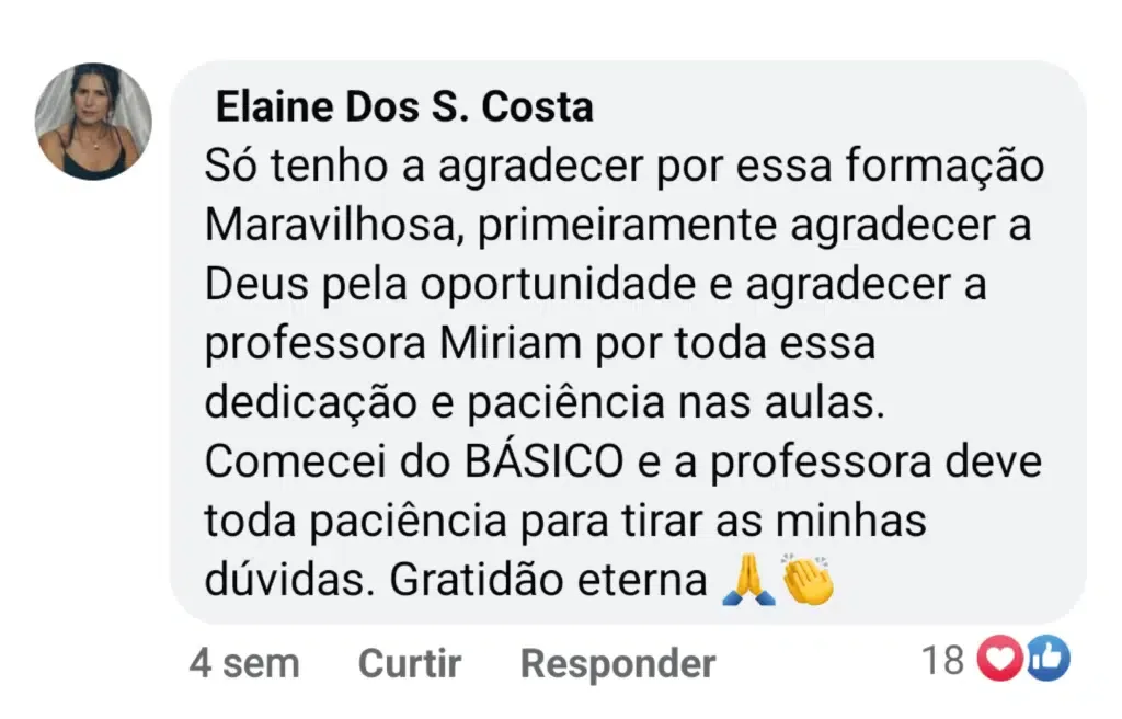 Você pode tirar todas as dúvidas com Professora Miriam, pela plataforma do curso, E-mail, Whatsapp, Grupo de aluno ou através das aulas ao vivo sempre que precisar. respondemos todas as suas questões.